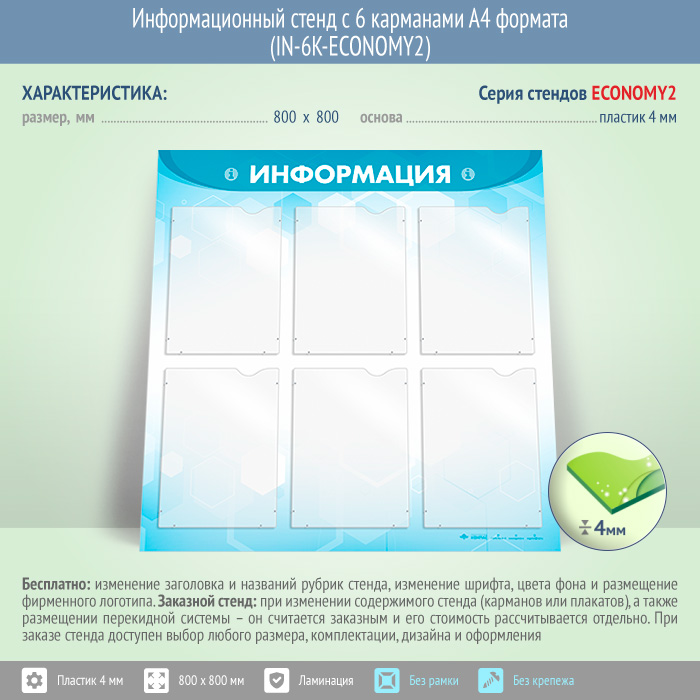 Информационный стенд с 6 карманами А4 формата (IN-6K-ECONOMY2) в Великом Новгороде купить