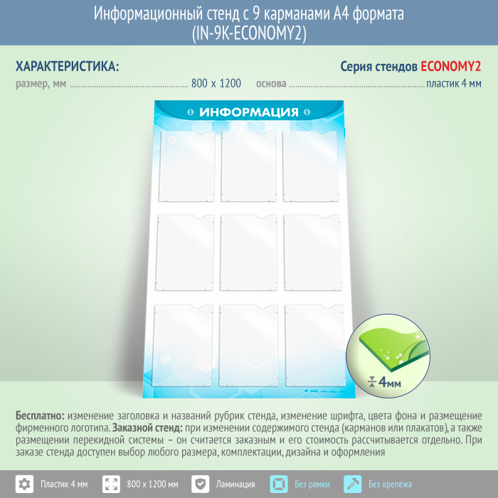 Информационный стенд с 9 карманами А4 формата (IN-9K-ECONOMY2) в Великом Новгороде купить