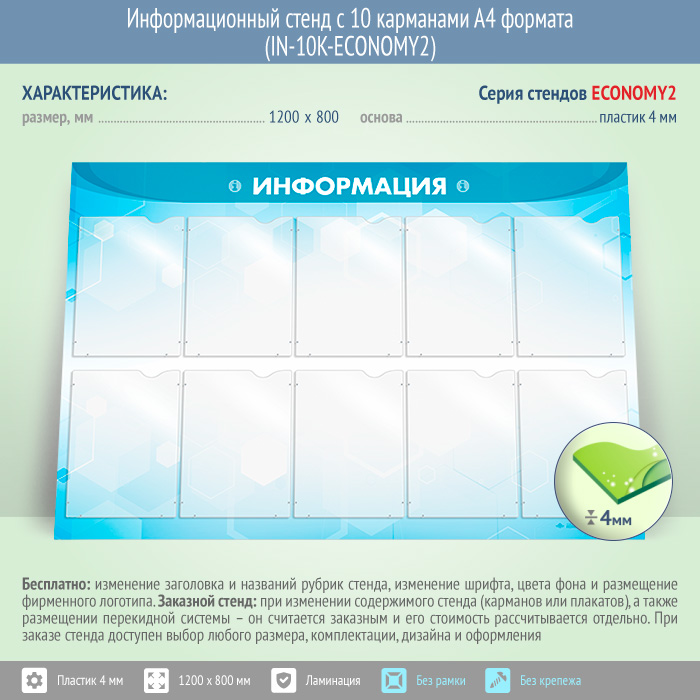 Информационный стенд с 10 карманами А4 формата (IN-10K-ECONOMY2) в Великом Новгороде купить