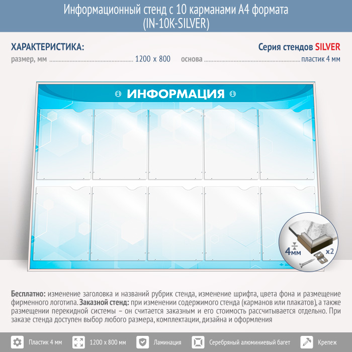 Информационный стенд с 10 карманами А4 формата (IN-10K-SILVER) в Великом Новгороде купить