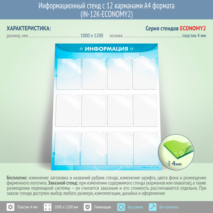 Информационный стенд с 12 карманами А4 формата (IN-12K-ECONOMY2) в Великом Новгороде купить