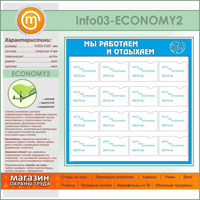 Стенд «Мы работаем и отдыхаем» с 16 карманами А5 формата (IN-03-ECONOMY2) в Великом Новгороде купить