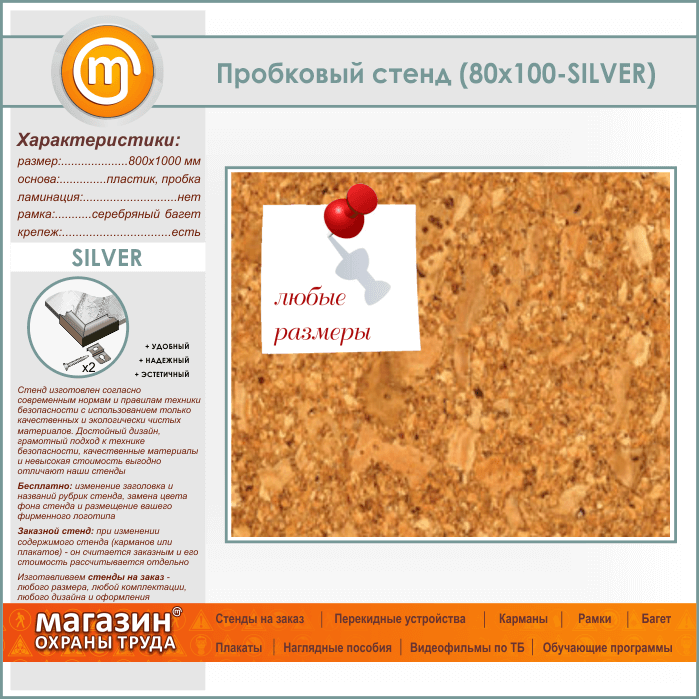 Пробковая доска, 100х80 см (IN-05-SILVER) в Великом Новгороде купить