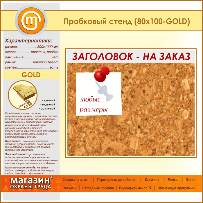 Пробковая доска с заголовком, 100х80 см (IN-06-GOLD) в Великом Новгороде купить