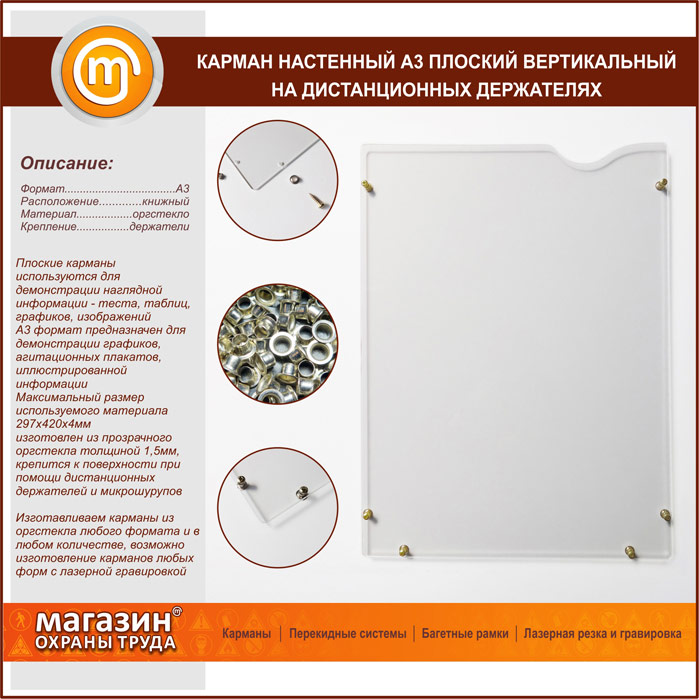 Карман настенный А3 плоский вертикальный на дистанционных держателях в Великом Новгороде купить