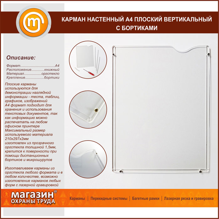 Карман настенный А4 плоский вертикальный с бортиками в Великом Новгороде купить