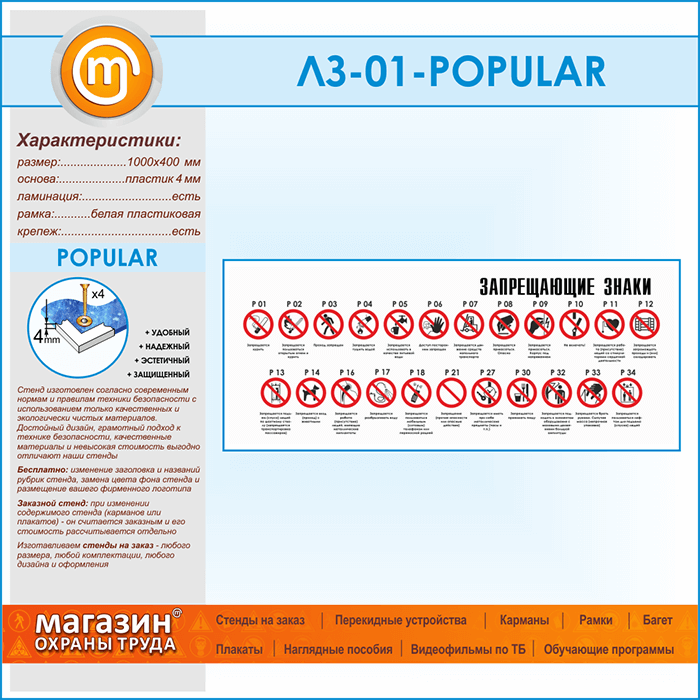 Стенд «Запрещающие знаки» (LZ-01-POPULAR) в Великом Новгороде купить