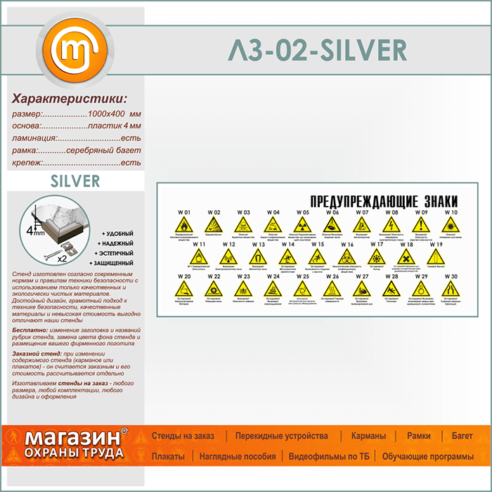 Стенд «Предупреждающие знаки» (LZ-02-SILVER) в Великом Новгороде купить