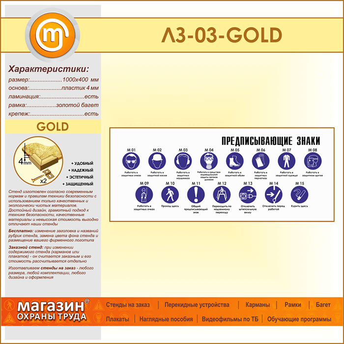Стенд «Предписывающие знаки» (LZ-03-GOLD) в Великом Новгороде купить