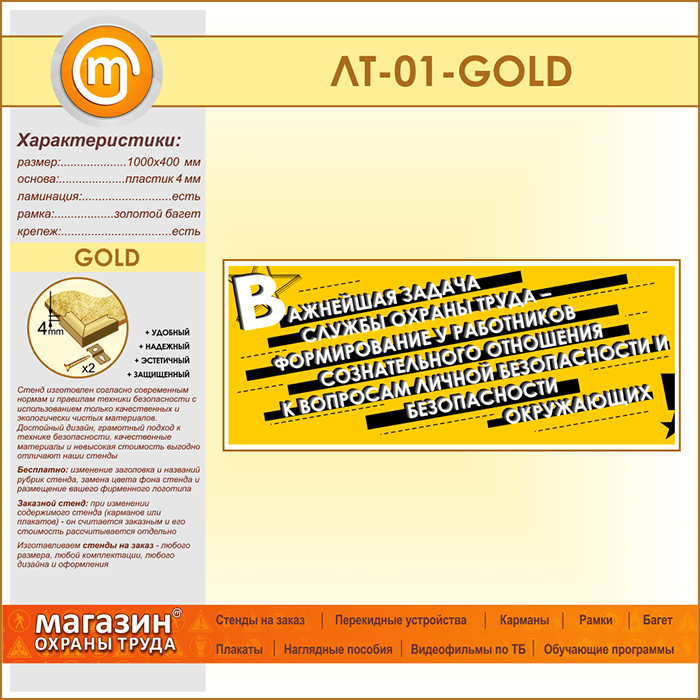 Лозунг «Важнейшая задача службы охраны труда...» (LT-01-GOLD) в Великом Новгороде купить