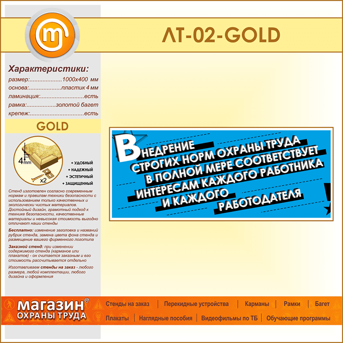 Лозунг «Внедрение строгих норм охраны труда...» (LT-02-GOLD) в Великом Новгороде купить