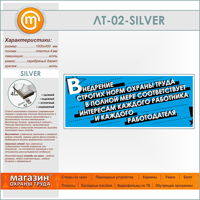 Лозунг «Внедрение строгих норм охраны труда...» (LT-02-SILVER) в Великом Новгороде купить