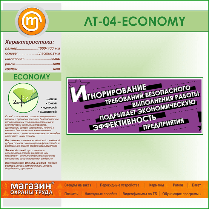 Лозунг «Игнорирование безопасного выполнения работы...» (LT-04-ECONOMY) в Великом Новгороде купить