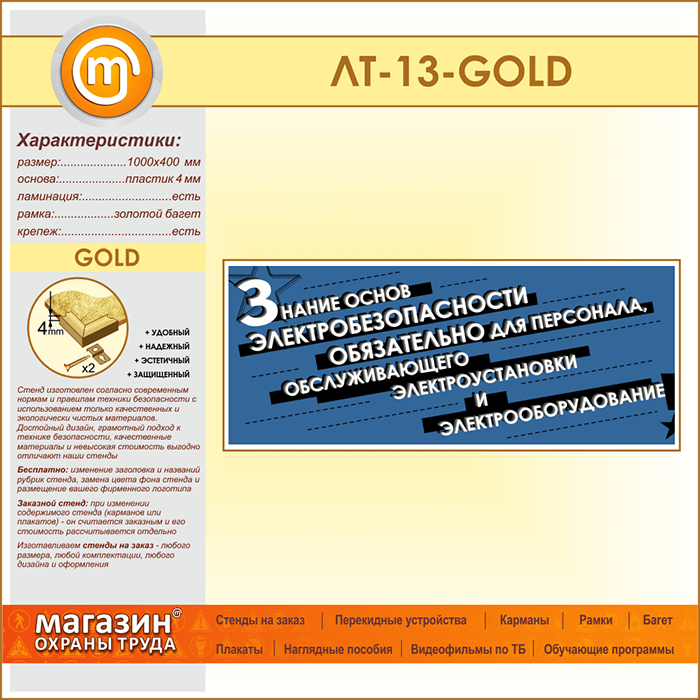 Лозунг «Знание основ электробезопасности обязательно...» (LT-13-GOLD) в Великом Новгороде купить