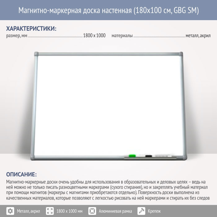 Магнитно-маркерная доска настенная (180x100 см, GBG SM) в Великом Новгороде купить