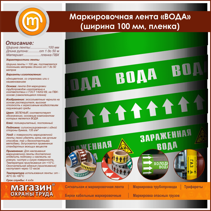 Маркировочная лента «ВОДА» (ширина 100 мм, самоклеящаяся плёнка) в Великом Новгороде купить