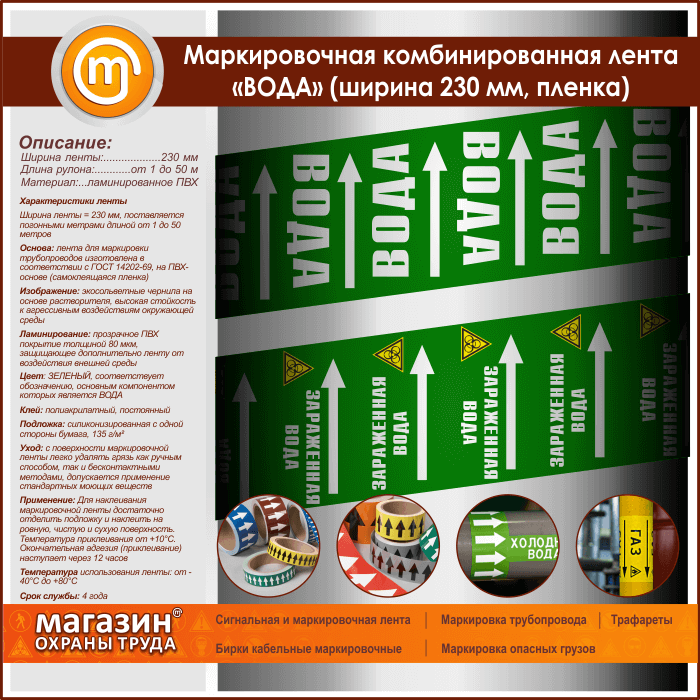 Маркировочная комбинированная лента «ВОДА» (ширина 230 мм, самоклеящаяся плёнка с ламинированием) в Великом Новгороде купить