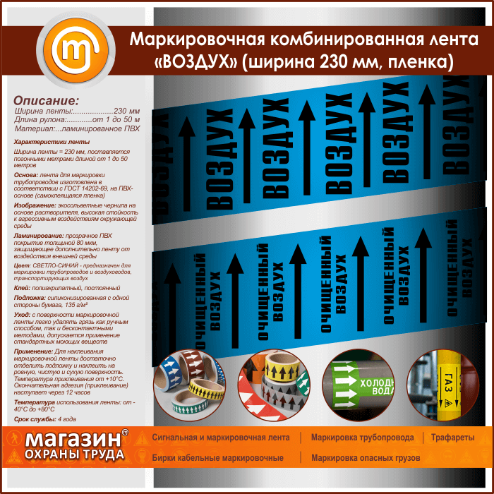 Маркировочная комбинированная лента «ВОЗДУХ» (ширина 230 мм, самоклеящаяся плёнка) в Великом Новгороде купить