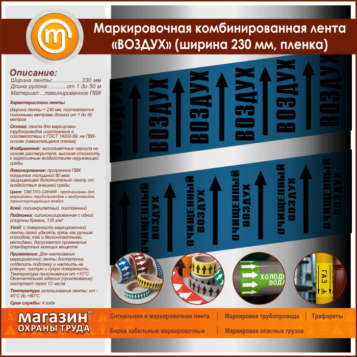 Маркировочная комбинированная лента «ВОЗДУХ» (ширина 230 мм, самоклеящаяся плёнка с ламинированием) в Великом Новгороде купить