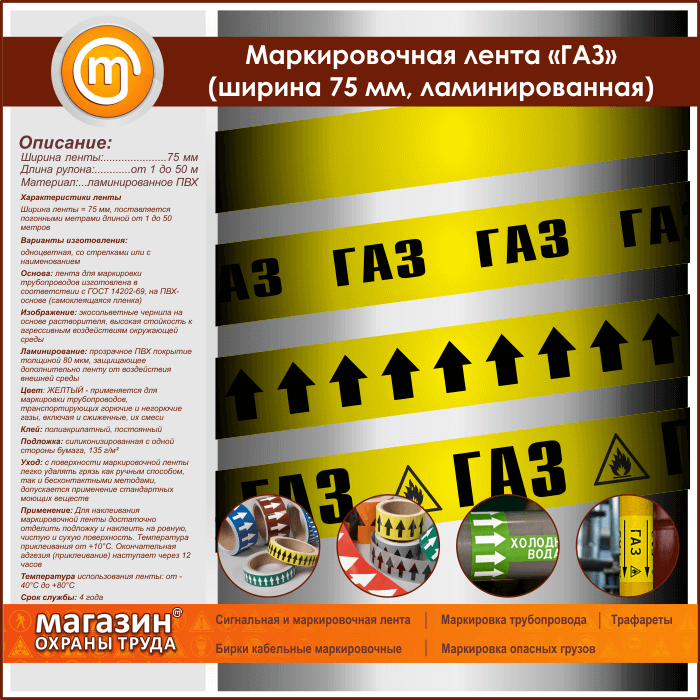 Маркировочная лента «ГАЗ» (ширина 75 мм, самоклеящаяся плёнка) в Великом Новгороде купить
