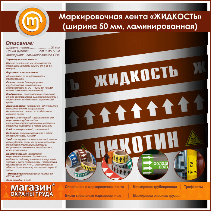 Маркировочная лента «ЖИДКОСТЬ» (ширина 50 мм, самоклеящаяся плёнка с ламинированием) в Великом Новгороде купить