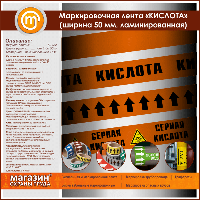 Маркировочная лента «КИСЛОТА» (ширина 50 мм, самоклеящаяся плёнка с ламинированием) в Великом Новгороде купить