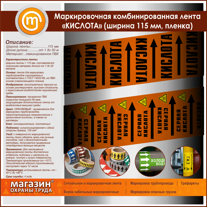 Маркировочная комбинированная лента «КИСЛОТА» (ширина 115 мм, самоклеящаяся плёнка с ламинированием) в Великом Новгороде купить
