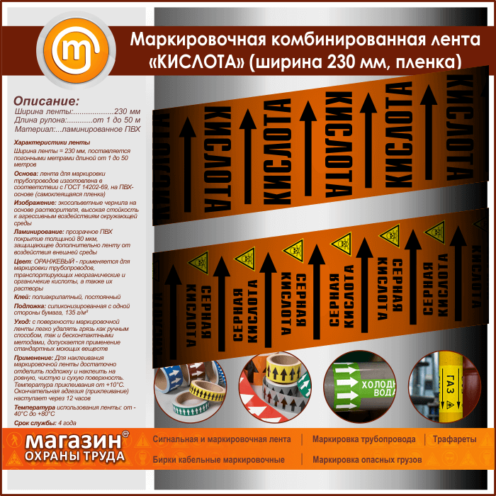 Маркировочная комбинированная лента «КИСЛОТА» (ширина 230 мм, самоклеящаяся плёнка с ламинированием) в Великом Новгороде купить