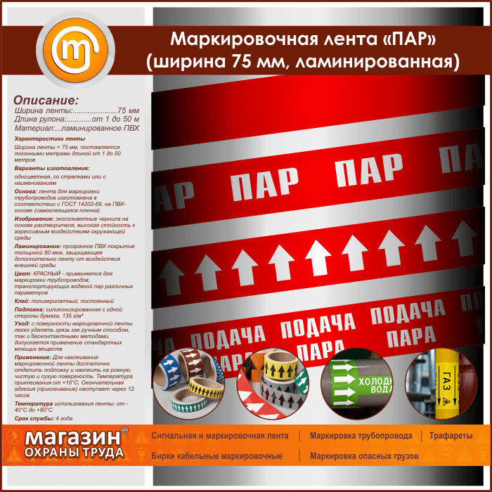 Маркировочная лента «ПАР» (ширина 75 мм, самоклеящаяся плёнка) в Великом Новгороде купить