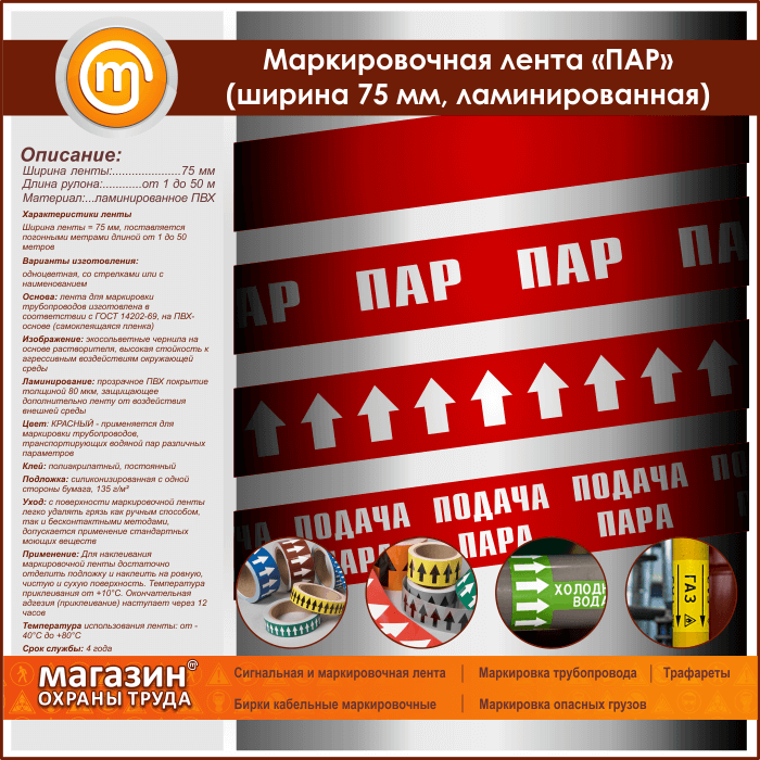 Маркировочная лента «ПАР» (ширина 75 мм, самоклеящаяся плёнка с ламинированием) в Великом Новгороде купить