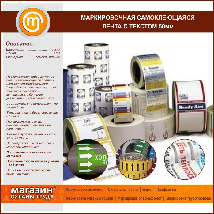 Маркировочная самоклеящаяся лента с текстом 50 мм в Великом Новгороде купить