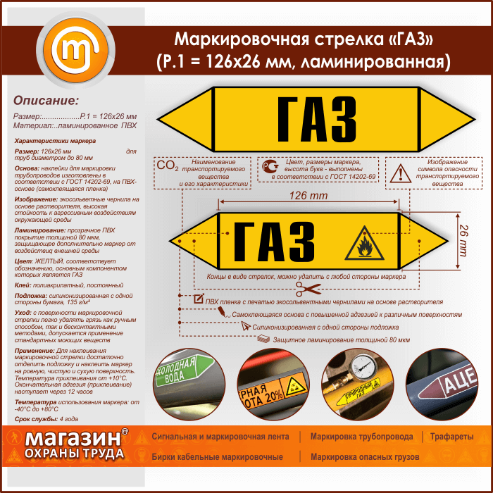 Маркировочная стрелка «ГАЗ» (Р.1 = 126х26 мм, самоклеящаяся плёнка с ламинированием) в Великом Новгороде купить