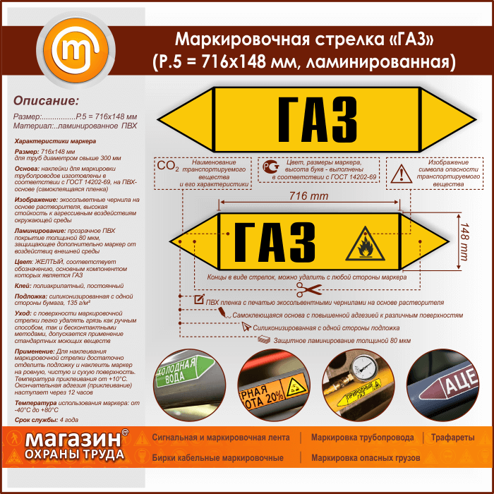 Маркировочная стрелка «ГАЗ» (P.5 = 716х148 мм, самоклеящаяся плёнка с ламинированием) в Великом Новгороде купить