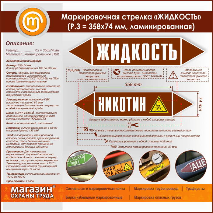 Маркировочная стрелка «ЖИДКОСТЬ» (P.3 = 358х74 мм, самоклеящаяся плёнка с ламинированием) в Великом Новгороде купить