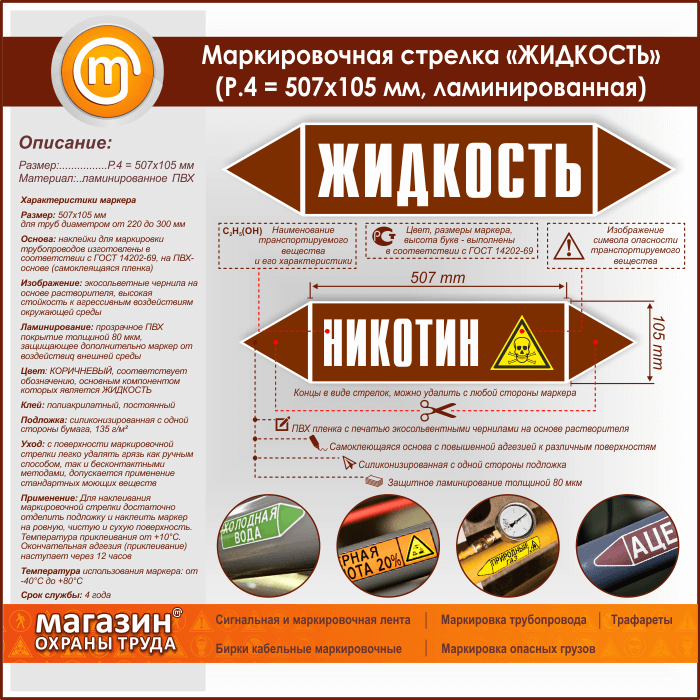 Маркировочная стрелка «ЖИДКОСТЬ»(P.4 = 507х105 мм, самоклеящаяся плёнка с ламинированием) в Великом Новгороде купить