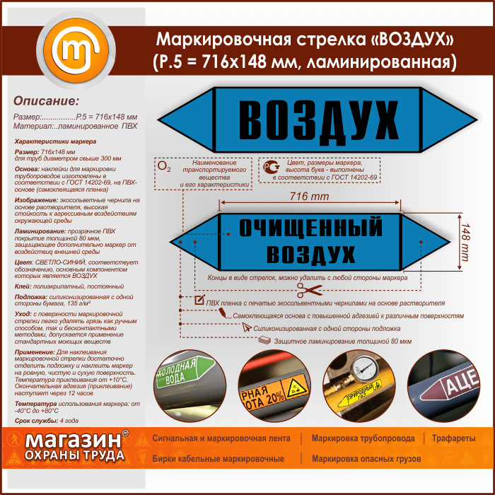 Маркировочная стрелка «ВОЗДУХ» (P.5 = 716х148 мм, самоклеящаяся плёнка с ламинированием) в Великом Новгороде купить