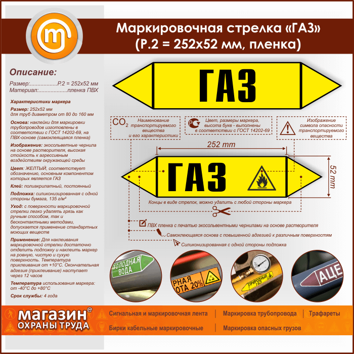 Маркировочная стрелка «ГАЗ» (P.2 = 252х52 мм, самоклеящаяся плёнка) в Великом Новгороде купить