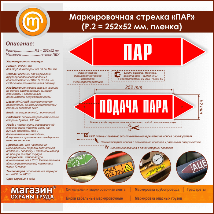 Маркировочная стрелка «ПАР» (P.2 = 252х52 мм, самоклеящаяся плёнка) в Великом Новгороде купить