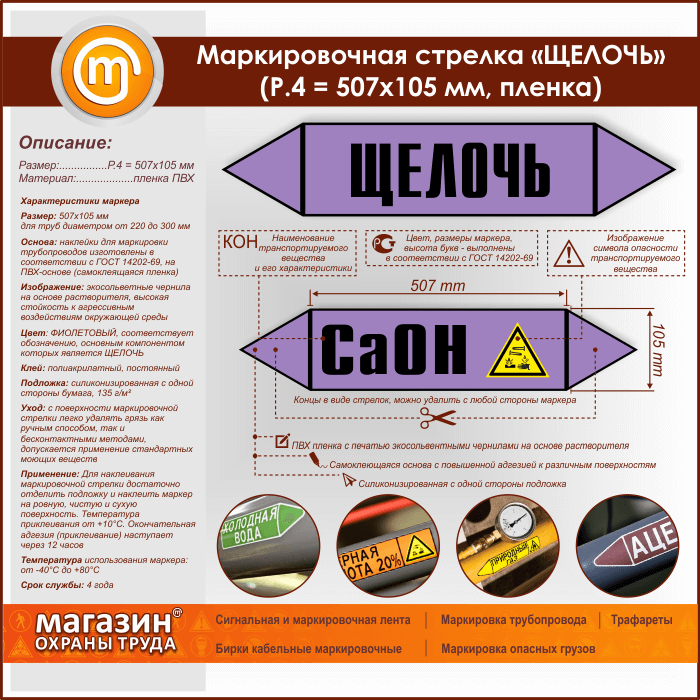Маркировочная стрелка «ЩЕЛОЧЬ» (P.4 = 507х105 мм, самоклеящаяся плёнка) в Великом Новгороде купить