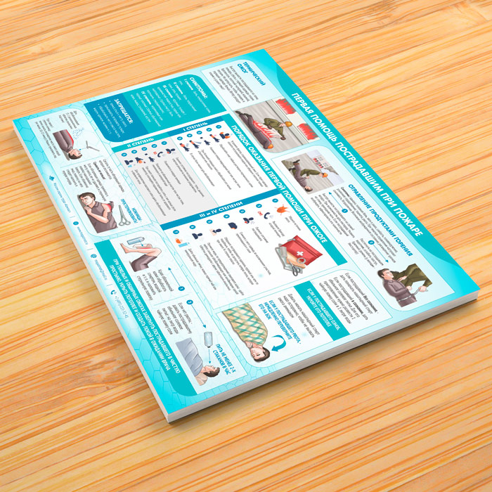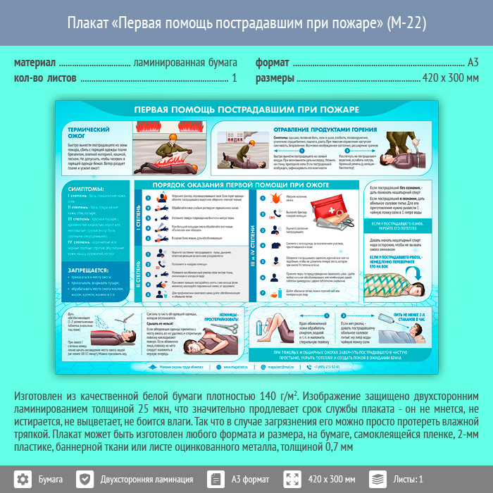Плакат «Первая помощь пострадавшим при пожаре» (М-22, ламинированная бумага, А3, 1 лист) в Великом Новгороде купить