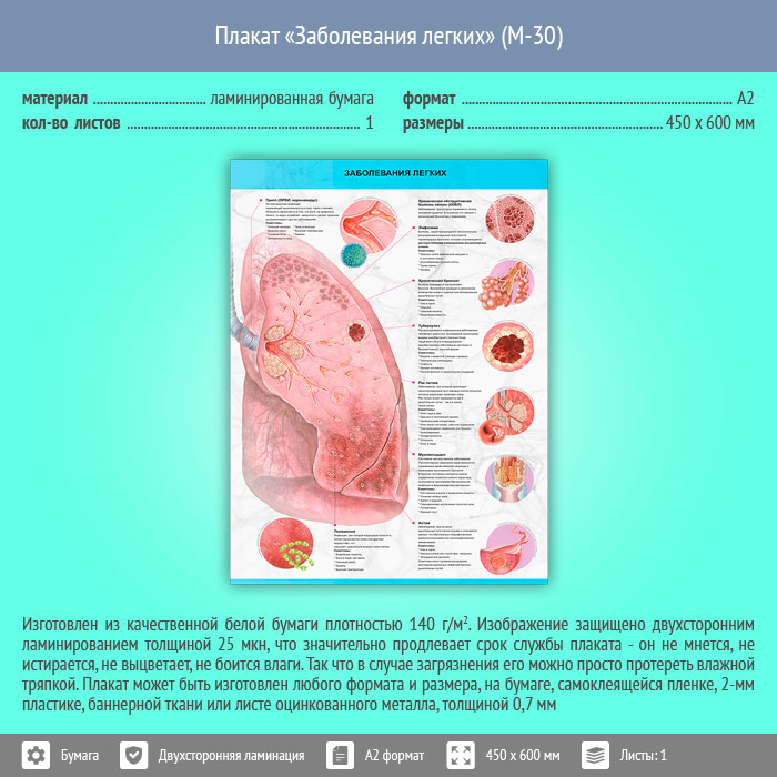 Плакат «Заболевания легких» (М-30, ламинированная бумага, А2, 1 лист) в Великом Новгороде купить