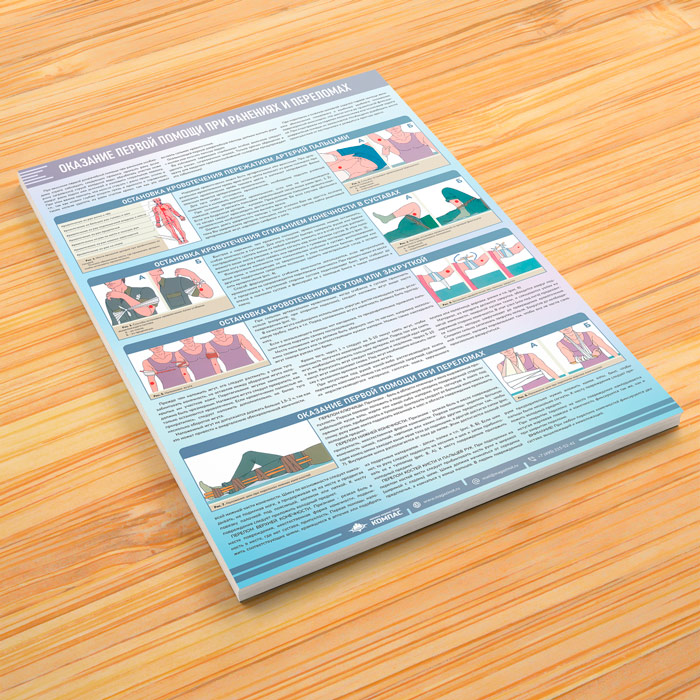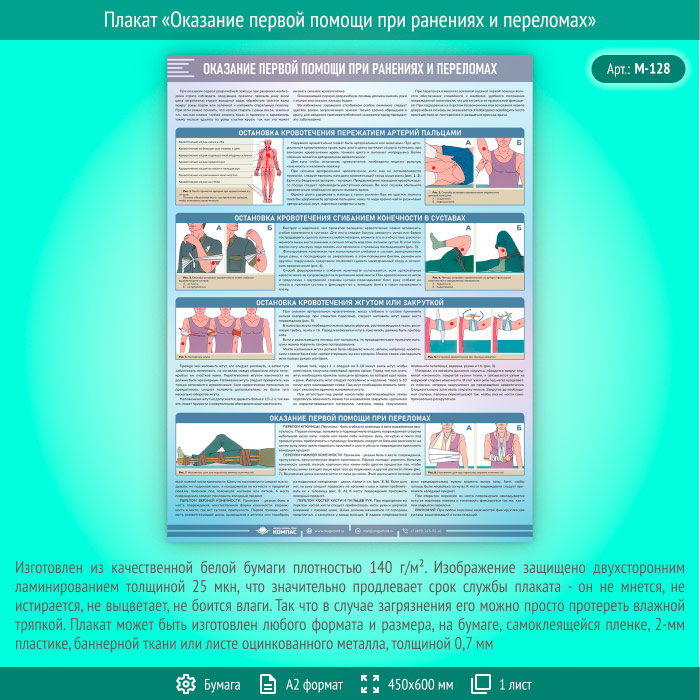 Плакат «Оказание первой помощи при ранениях и переломах» (М-128, ламинированная бумага, А2, 1 лист) в Великом Новгороде купить
