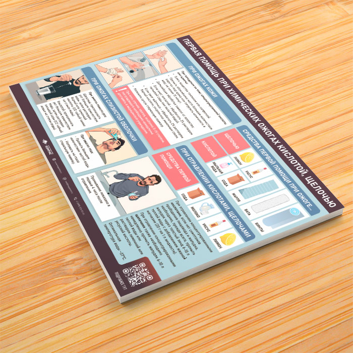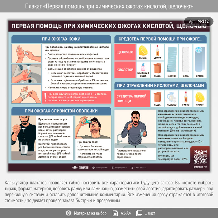 Плакат «Первая помощь при химических ожогах кислотой, щелочью» с QR (М-132, 1 лист) в Великом Новгороде купить