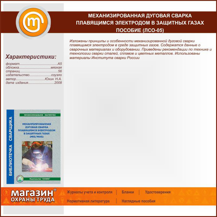 Механизированная дуговая сварка плавящимся электродом в защитных газах – пособие (ЛСО-05) в Великом Новгороде купить