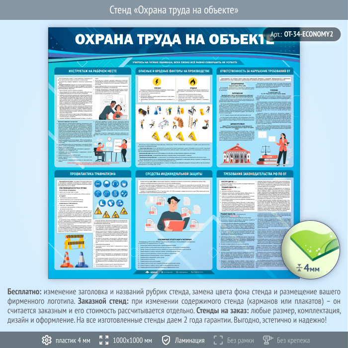 Стенд «Охрана труда на объекте» (OT-34-ECONOMY2) в Великом Новгороде купить