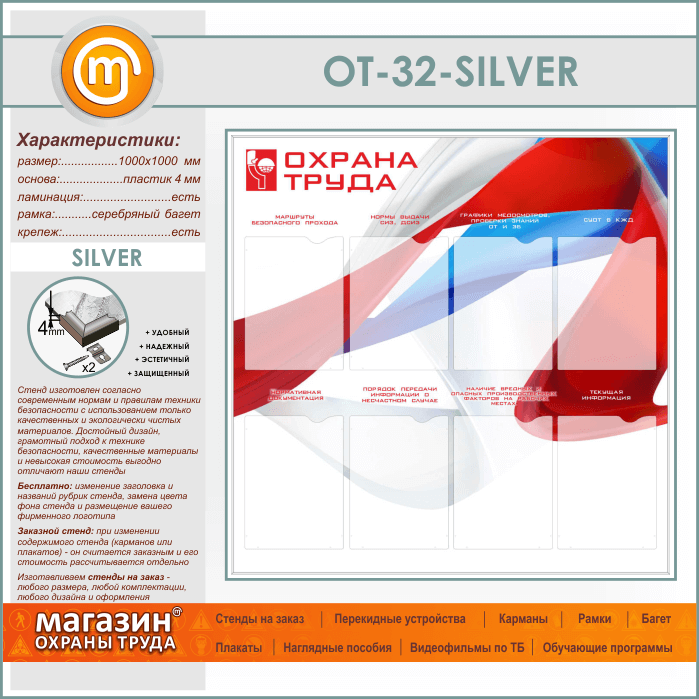 Стенд «Охрана труда» с 8 карманами (OT-32-SILVER) в Великом Новгороде купить