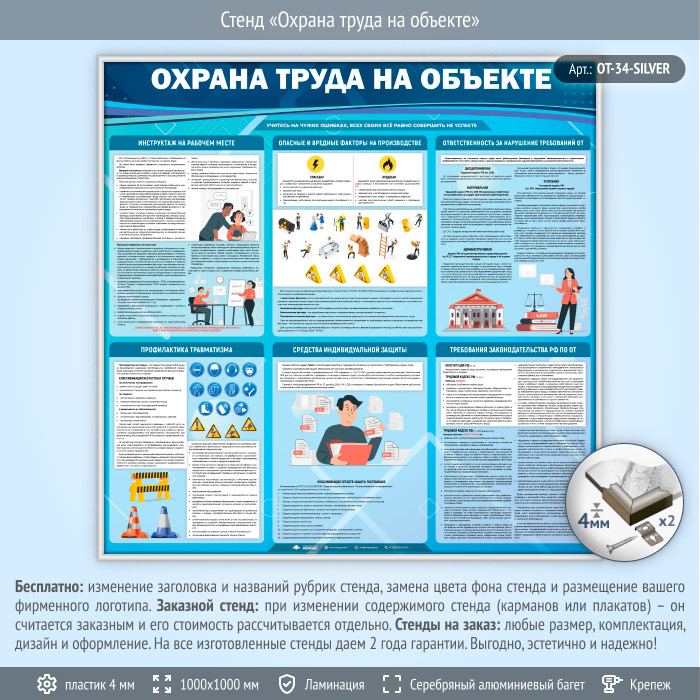 Стенд «Охрана труда на объекте» (OT-34-SILVER) в Великом Новгороде купить