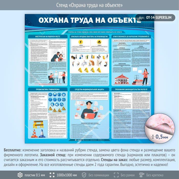 Стенд «Охрана труда на объекте» (OT-34-SUPERSLIM) в Великом Новгороде купить