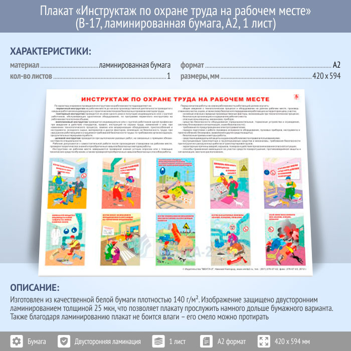 Плакат «Инструктаж по охране труда на рабочем месте» (В-17, ламинированная бумага, А2, 1 лист) в Великом Новгороде купить