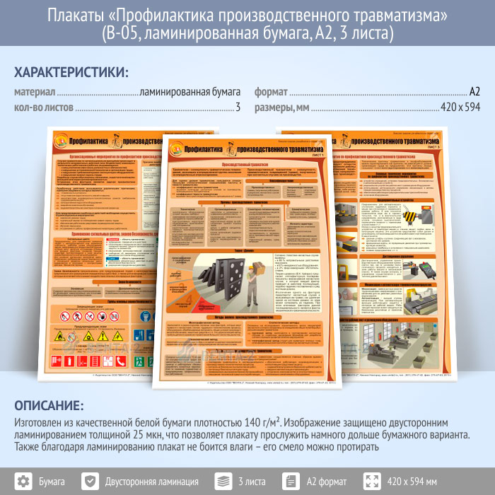 Плакаты «Профилактика производственного травматизма» (В-05, ламинированная бумага, А2, 3 листа) в Великом Новгороде купить